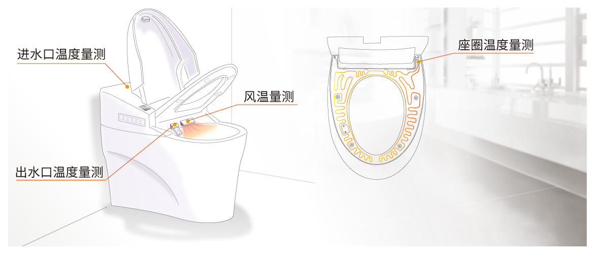 隨著人們的生活水平和消費(fèi)能力的提升,以及智能技術(shù)在家居生活中的應(yīng)用普及,智能馬桶的使用也逐漸出現(xiàn)在越來越多的家庭中。智能馬桶自誕生以來,一直都是以加熱、清洗、沖水為三個最基礎(chǔ)的功能。在此基礎(chǔ)功能和技術(shù)支持下,發(fā)展出的創(chuàng)新功能日漸增多。目前市場上大多智能馬桶不僅集恒溫座圈、溫水洗凈、自動烘干等多項功能于一身,甚至有噴頭自潔、活性炭除臭、夜燈設(shè)計、音樂搭載、按摩等人性化功能,為居民提供了便捷的潔身功效和舒適的清洗體驗,滿足了居民對舒適生活和對健康生活的需求。興勤針對智能馬桶開發(fā)了具備座溫偵測、水溫偵測、風(fēng)溫偵測功能的溫度傳感器,為智能馬桶的人性化設(shè)計保駕護(hù)航。